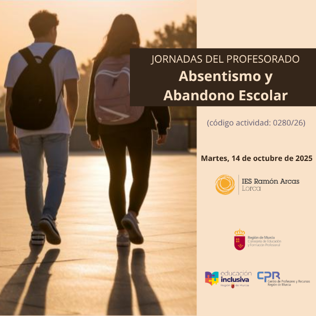 Convocatoria de la actividad Jornadas del Profesorado: Absentismo y Abandono Escolar, que se celebrará el 14 de octubre en el IES Ramón Arcas Meca, de Lorca.