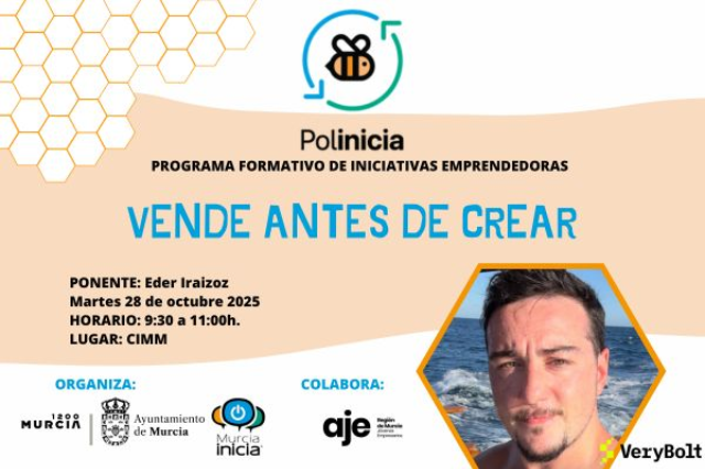 El próximo martes 28 de octubre, en el CIMM, Eder Iraizoz, CEO de Very Bolt, y experto en diseño de producto, impartirá el taller "Vender antes de crear". Este taller, dirigido a todo el tejido empresarial murciano, abordará, desde un enfoque práctico el diseño del producto, con aplicación de un método proveniente de Estados Unidos, que trata de evitar el fracaso, al construir algo, que nadie quiere Con este enfoque científico americano se invierte completamente el proceso: validar antes de crear y no, al revés, lo que asegura procesos más viables y rentables Como cada martes este taller irá seguido de una jornada de networking.