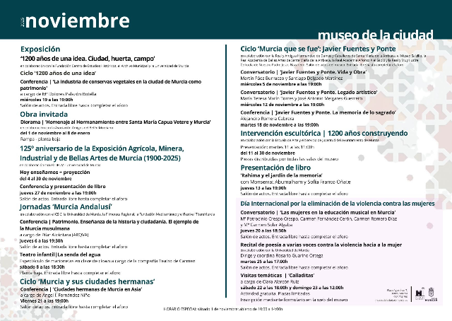 Puedes consultar la agenda completa en: https://museodelaciudad.murcia.es/agenda