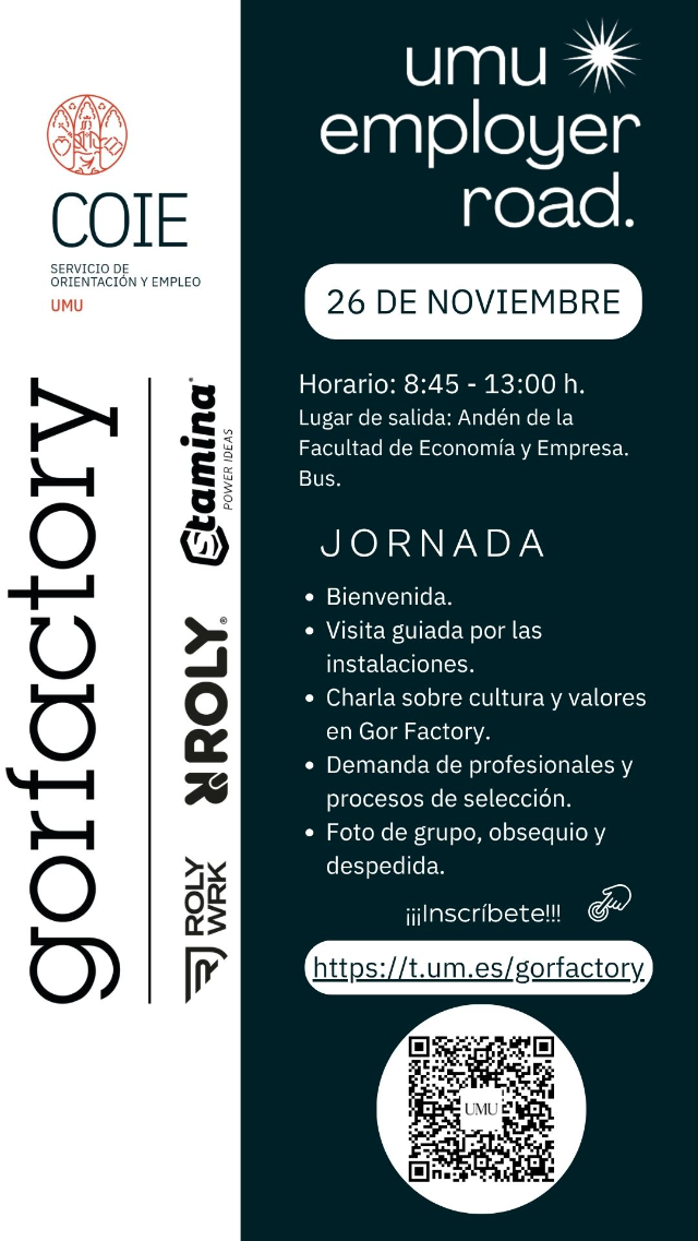 En esta ocasión la visita se realizará a GOR FACTORY, empresa murciana que, desde hace 40 años, equipa a las marcas que quieren destacar en más de 80 países. Líder en el mercado nacional, dentro del sector textil y merchandising promocional, la compañía, que engloba Roly, Roly WRK y Stamina, ofrece soluciones integrales que combinan sostenibilidad, innovación y un servicio logístico eficiente. Con más de 800 empleados distribuidos entre la sede principal en Santomera, Murcia y las delegaciones de Madrid, Barcelona y Canarias.