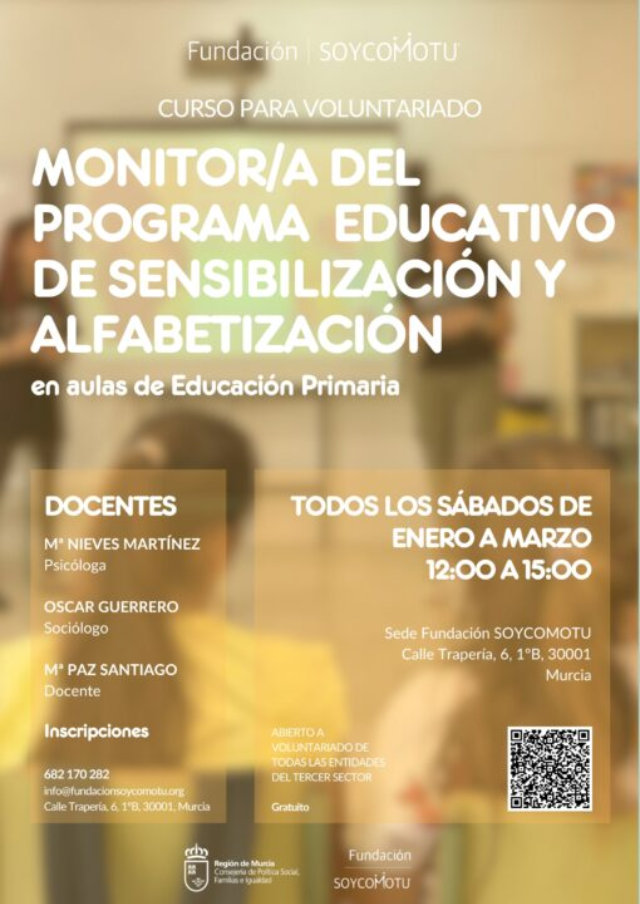 Este curso tiene como objetivo facilitar al voluntariado la adquisición de los conocimientos y habilidades necesarias como formador/a del Programa Educativo SOYCOMOTU y de sensibilización para su implementación en los Centros de Educación Primaria.