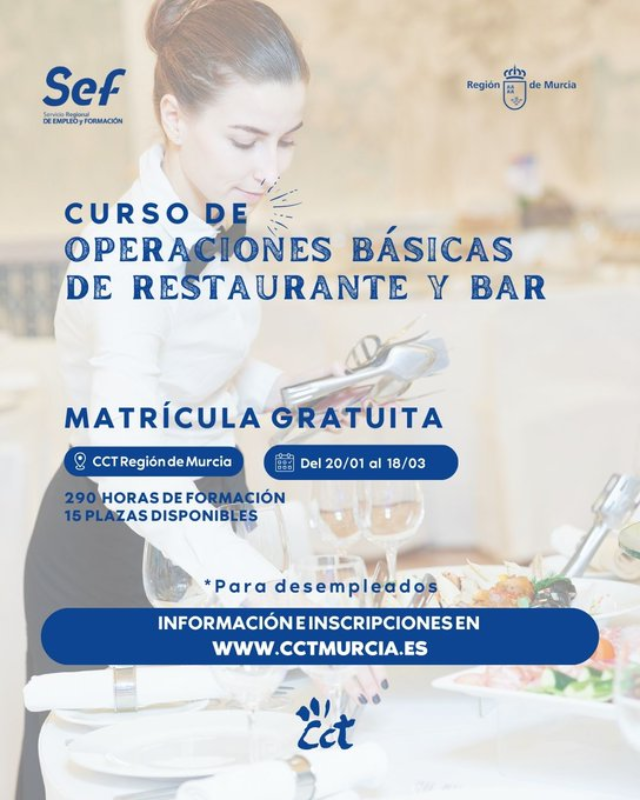 La prueba de selección de esta acción formativa se llevará a cabo el 8 de enero, a las 10:30 horas en el CCT.
