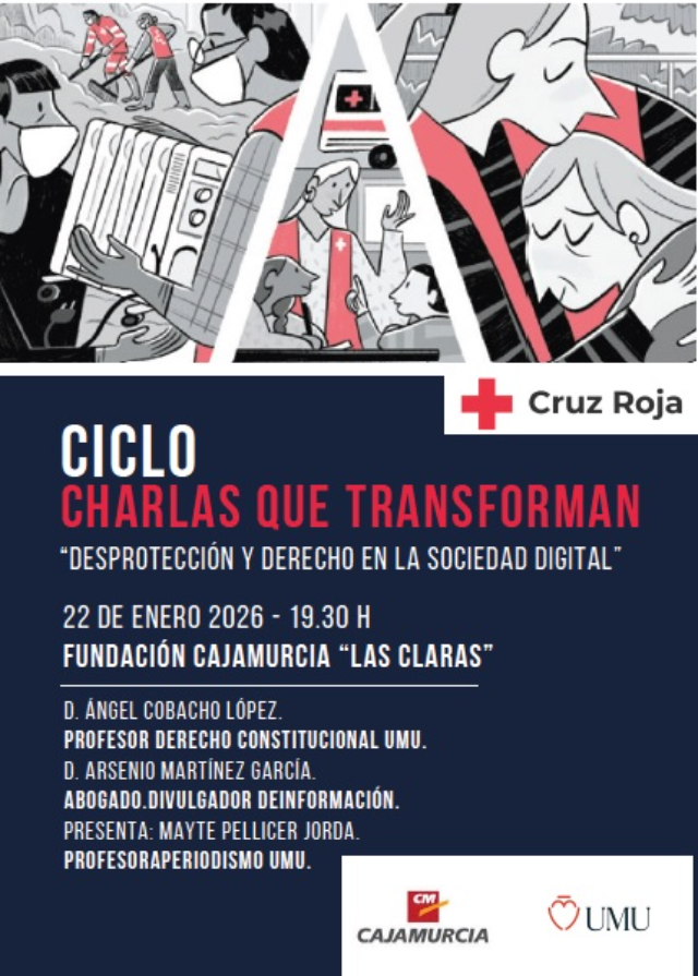 Esta charla estará presentada por MAYTE PELLICER JORDA y participaran D. ÁNGEL COBACHO LÓPEZ, profesor de Derecho Constitucional de la UMU y D. ARSENIO MARTÍNEZ GARCÍA, abogado. Divulgador de Información.