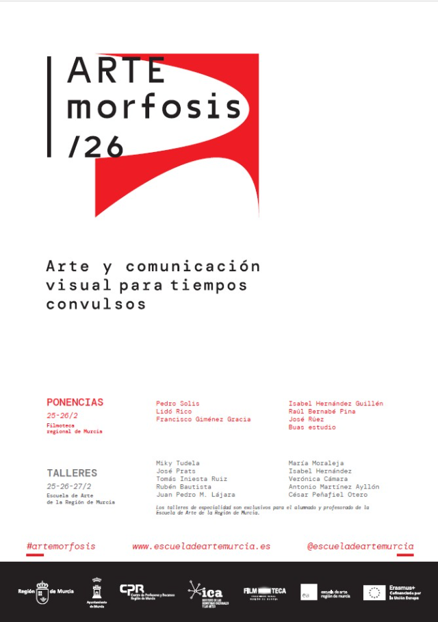 Es en este contexto, por iniciativa de la Escuela de Arte de la Región de Murcia, en el que nace ARTEmorfosis, como punto de encuentro para la reflexión y el debate entre los profesionales, presentes y futuros, de los diferentes sectores que componen el amplio espectro del arte y de la comunicación visual.