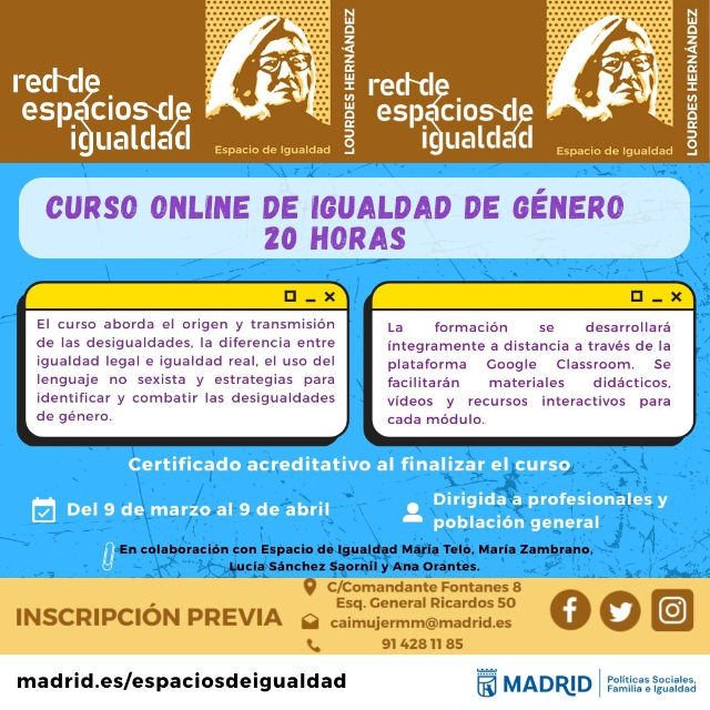 El curso aborda el origen y transmisión de las desigualdades, la diferencia entre igualdad legal e igualdad real, el uso no sexista del lenguaje y estrategias para identificar y combatir las desigualdades de género. La formación se desarrollará íntegramente a distancia a través de la plataforma Google Classroom Se facilitarán materiales didácticos y recursos interactivos para cada módulo.