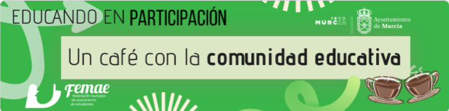 "Un café con la comunidad educativa" es la primera actividad del proyecto "Educando en Participación", organizado por FEMAE y subvencionado por el Exmo. Ayuntamiento de Murcia.