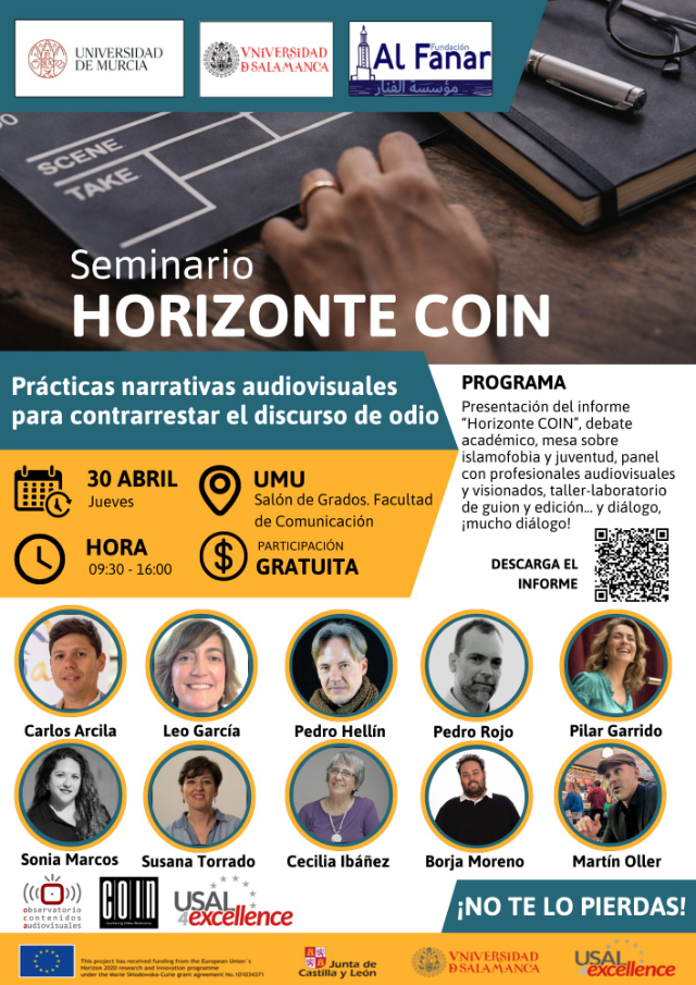 Presentación del informe "Horizonte COIN", debate académico, mesa sobre islamofobia y juventud, panel con profesionales audiovisuales y visionados, taller-laboratorio de guion y edición... y diálogo, ¡mucho diálogo!