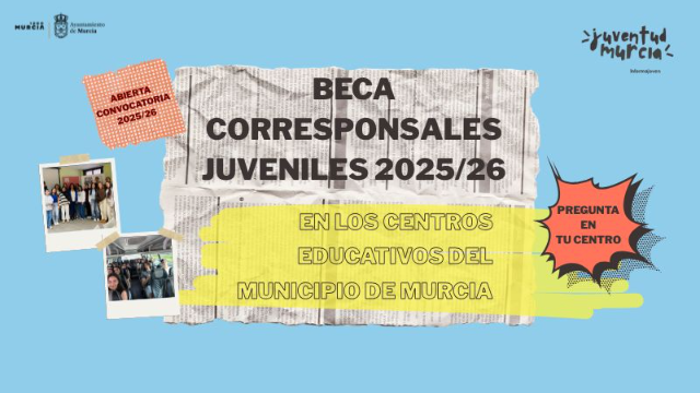 Hasta el 13 de octubre de 2025 se puede solicitar una de las 29 de Becas de colaboración que, desde el Servicio Municipal de Juventud ofrece el Ayuntamiento de Murcia, destinadas a establecer y mantener durante elcurso 2025/26r un "Punto de Información Juvenil PIJ";