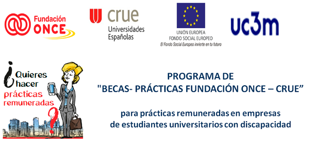 Fundacion ONCE pone en marcha la X edición del programa de becas de prácticas FUNDACIÓN ONCE-CRUE para el curso académico 2025-2026. El programa ofrece la oportunidad de que el estudiantado universitario con discapacidad realice prácticas académicas externas remuneradas. El programa cuenta con la cofinanciación del Fondo Social Europeo.