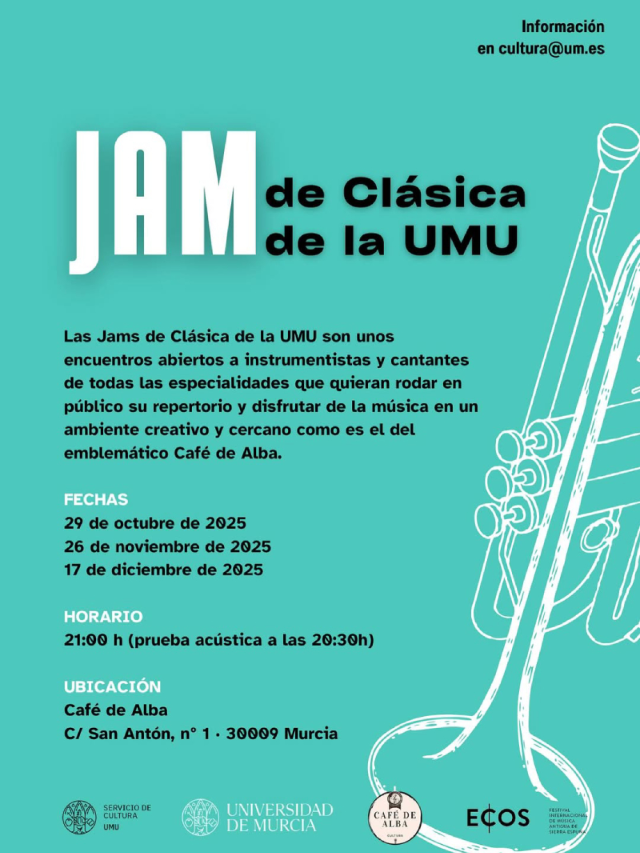 El 29 de octubre arrancan las Jam de Clásica de la UMU en el Café de Alba dentro de la programación de la Bienvenida Universitaria 2025/2026.