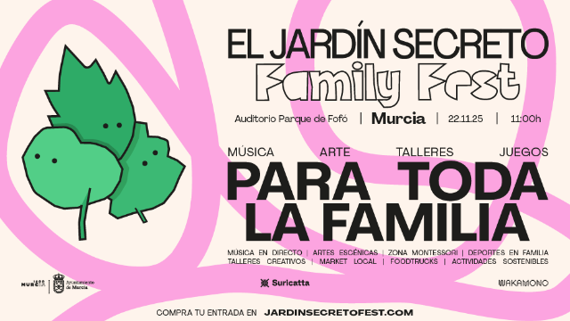 Descargar autorización:  https://d2il8hfach02z9.cloudfront.net/uploads/event/auth_minors/0a2720672afc56eb545697c81b3a0af0cf6cba82/AUTORIZACIO%CC%81N_JARDI%CC%81N_SECRETO_FAMILY_FEST_MURCIA.pdf?v=1762164053