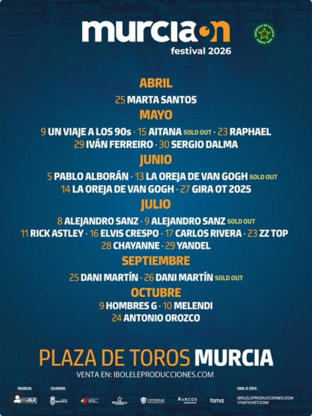 Ya está aquí la programación de conciertos Murcia ON de 2026, que se celebrarán en la Plaza de Toros de Murcia.