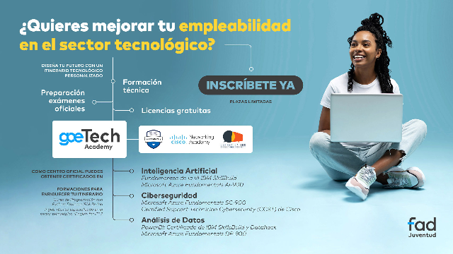 Desde Fad Juventud lanzan la 4.ª edición de GoeTech Academy, programa gratuito de empleabilidad juvenil en el sector tecnológico, con formación online, certificaciones oficiales y acompañamiento al empleo.