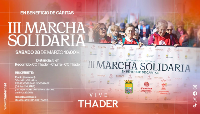 La actividad está organizada por la Junta Municipal de Churra en colaboración con el Centro Comercial Thader.