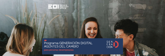 Generación Digital es un programa completamente gratuito gracias a la financiación de los fondos NextGenerationEU y en el que están involucradas múltiples entidades de prestigio. La Secretaría de Estado de Digitalización e Inteligencia Artificial (SEDIA) del Ministerio para la Transformación Digital y de la Función Pública lidera este programa y la Escuela de Organización Industrial (EOI) lo coordina. Forma parte del Plan Nacional de Capacidades Digitales, enmarcado dentro del Plan de Recuperación y Resiliencia del Gobierno de España.