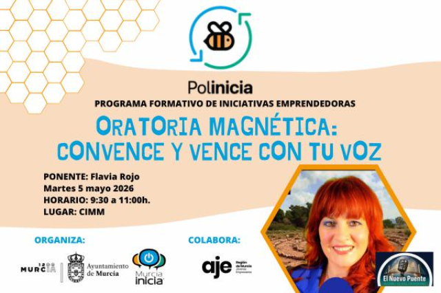 El próximo 5 de mayo tendremos un nuevo taller de polinicia "ORATORIA MAGNÉTICA: CONVENCE Y VENCE CON TU VOZ", en el que se tratarán técnicas para venderte mejor, adaptadas a tu negocio. ¡Sal del taller con ideas listas para aplicar y ver resultados reales YA!