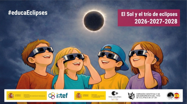 El Ministerio de Educación, Formación Profesional y Deportes ha diseñado junto al equipo de trabajo de Educación de la Comisión Científica y de Asesoramiento del Trío de Eclipses y el equipo de Coordinadores Nacionales de Astronomía para la Educación (NAEC) de la Unión Astronómica Internacional, una formación gratuita para que tanto el profesorado como la ciudadanía en general puedan aprovechar la oportunidad educativa que suponen los eclipses totales de 2026 y 2027 y el eclipse anular de 2028, que serán visibles desde España, además de hacer un seguimiento seguro de los mismos.