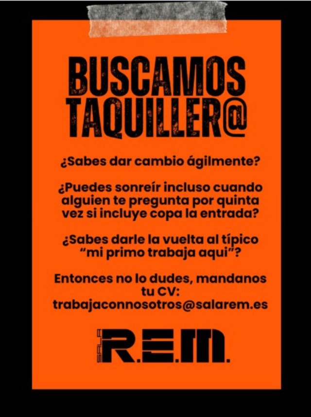 Título: Oferta de empleo: Sala REM busca Taquiller@